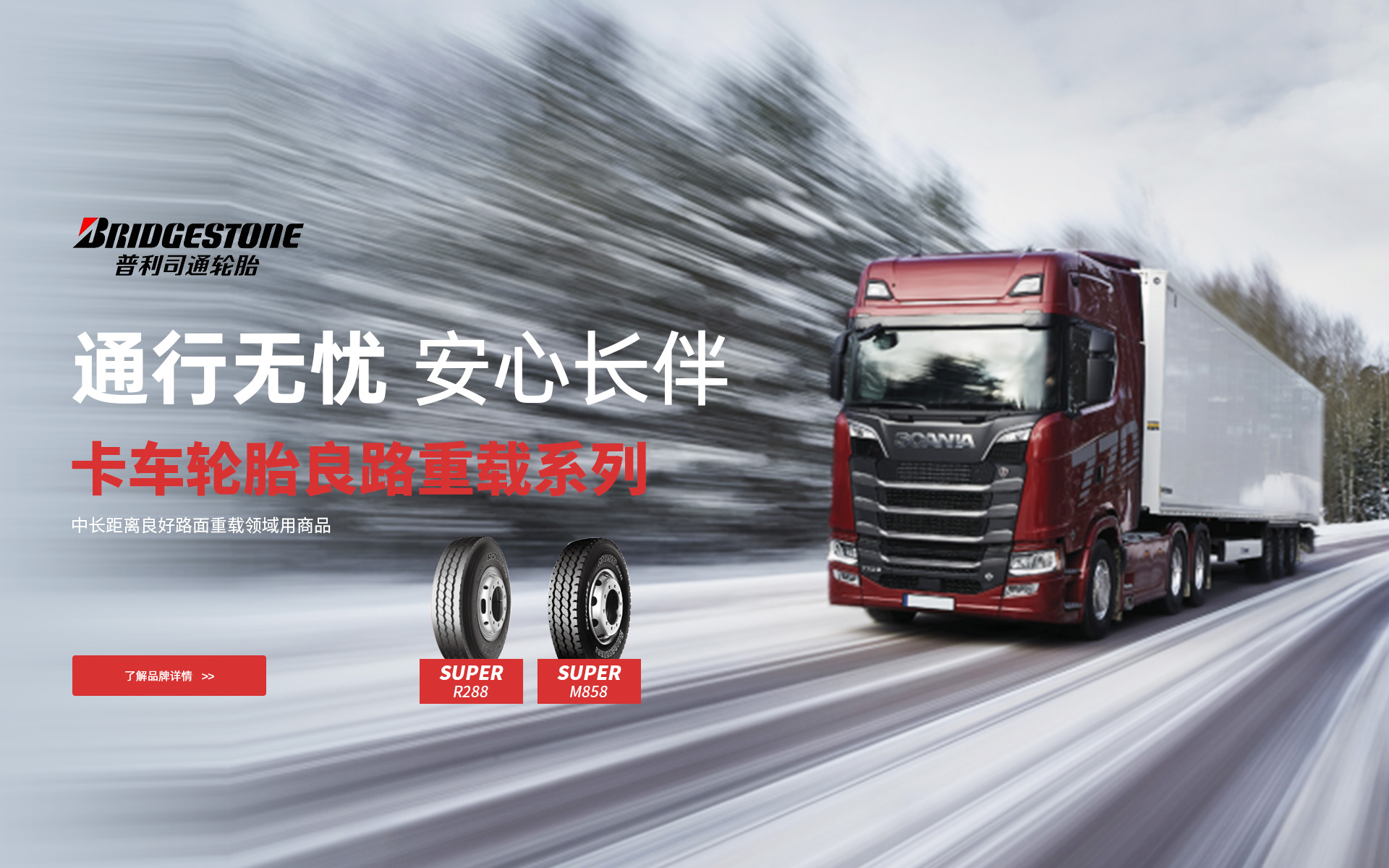 榮德松公司以“為公路運輸提供一流的產品和一流的服務”作為企業使命,從2013年至今分別代理了BPW車軸、JOST、斯堪尼亞、瀚德、正興、普利司通等全球頂級公路運輸裝備品牌。